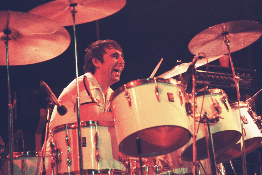 Keith Moon, the drummer for The Who, was explosive onstage and unpredictable offstage. He energized tracks like My Generation and Baba O’Riley. Moon died of a drug overdose at age 32, a symbol of rock’s chaotic, destructive undercurrent.