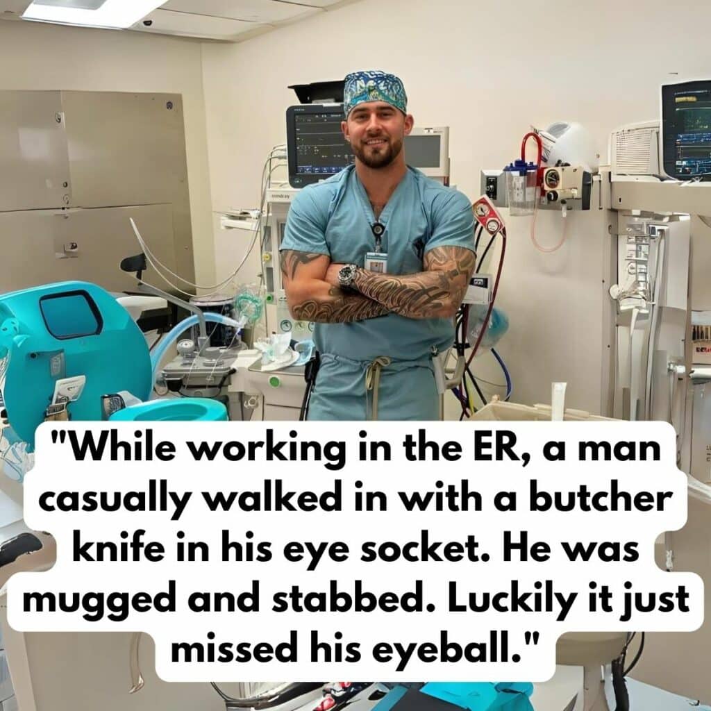 They always say you never know how you’ll react during an emergency. Some people panic, while others remain eerily calm due to shock. The man in this story learned that he feels completely calm during a life-threatening crisis. He walked into his local ER one evening with a butcher knife sticking out of his eye!