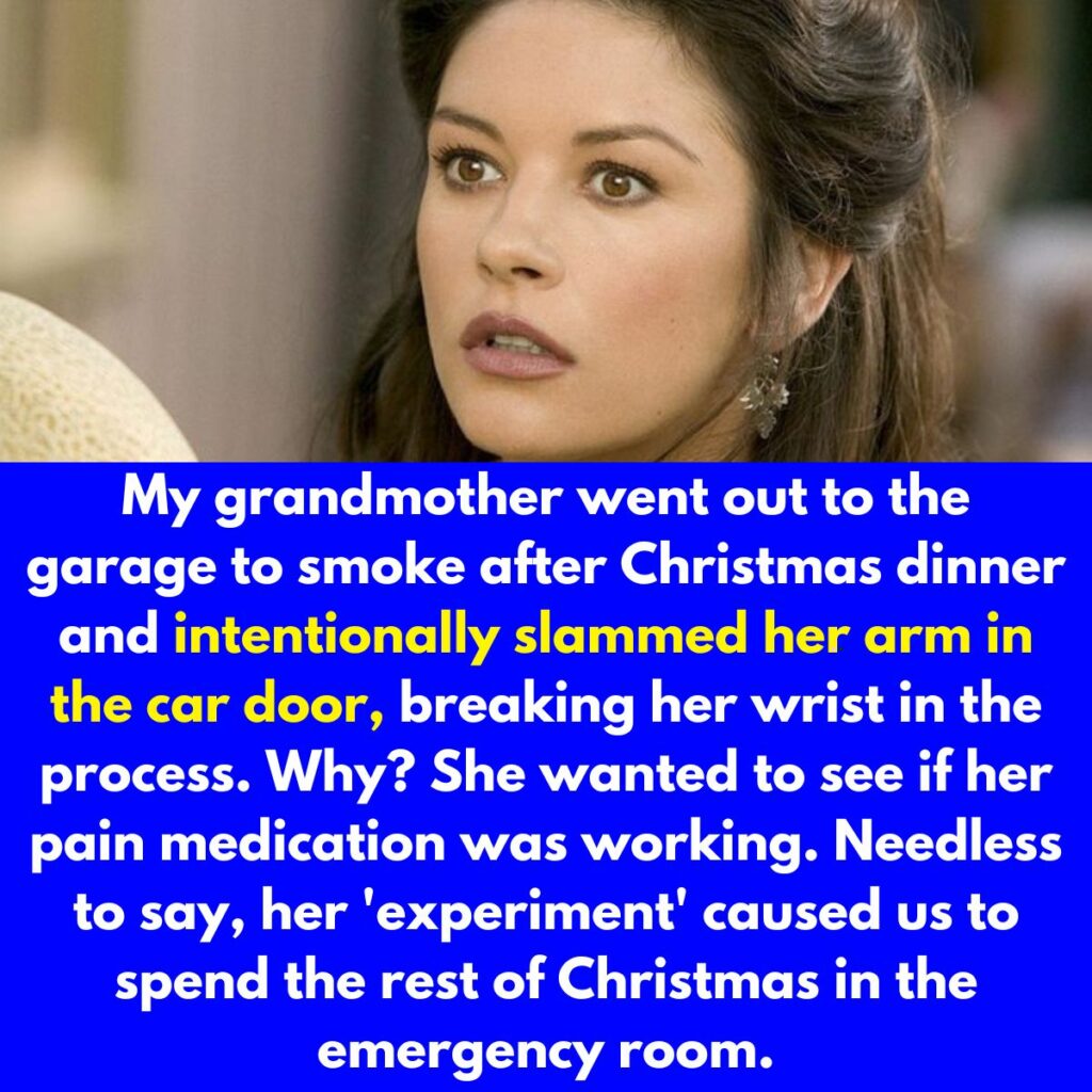 Here’s another important life lesson for you – if you want to test that your medication is working, I strongly do not recommend doing something like this. There are far better ways to check if it’s a placebo effect that doesn’t involve slamming your arms into car doors as this grandma did!